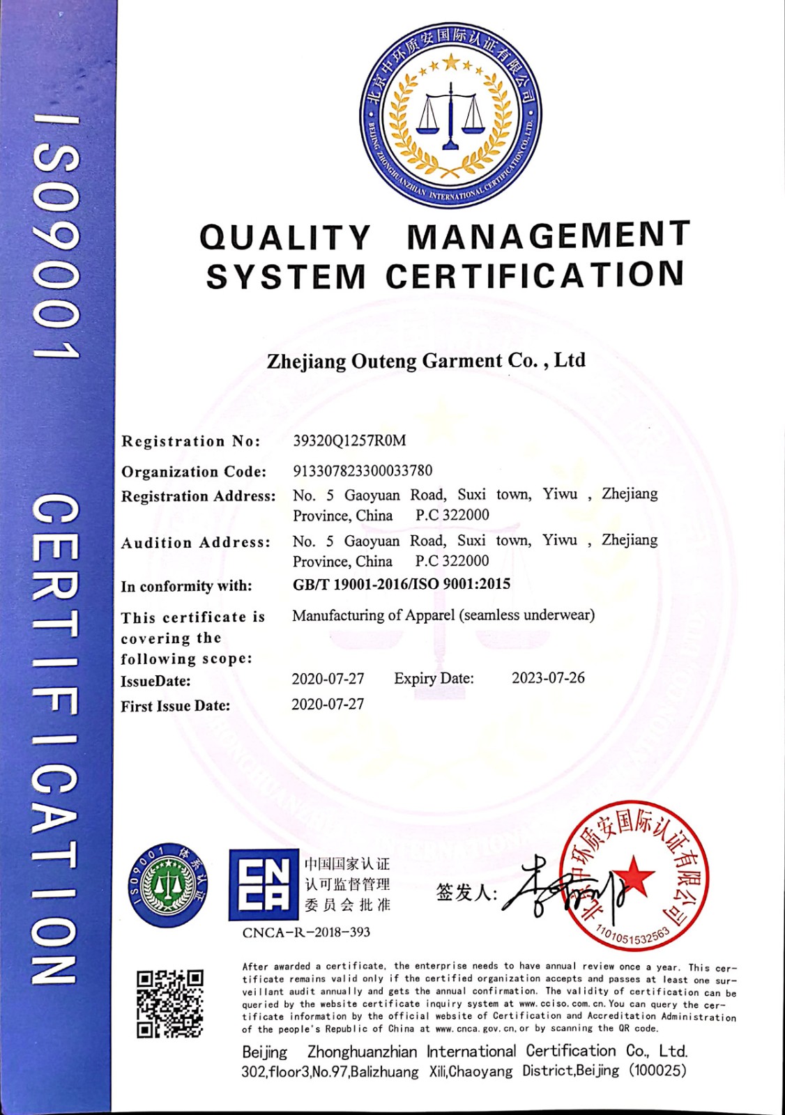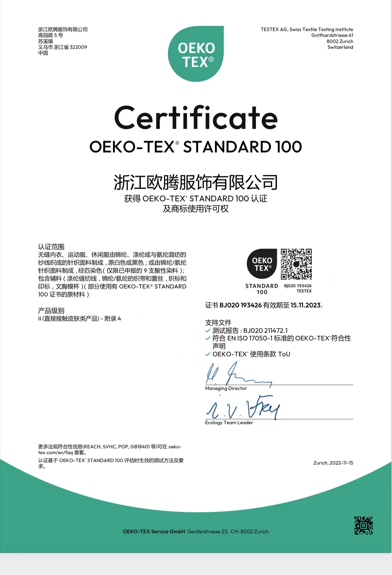 浙江歐騰服飾有限公司位于世界小商品之都-義烏。創(chuàng)立于2015年,是一家專業(yè)生產(chǎn)無縫針織運動服飾和內(nèi)衣的工貿(mào)一體企業(yè),擁有自主出口權(quán)。 工廠的占地面積約16000平方米 ,引進了大型圣東尼、高騰等多種先進的制衣設備300余臺。月產(chǎn)能可達90萬件。 歐騰服飾每年投入近百萬資金打樣開發(fā)新產(chǎn)品,有著一支高素質(zhì)設計、技術員工隊伍。工廠先后通過了ISO 9001質(zhì)量管理體系認證、BSCI認證、GRS認證、OEKO-TEX國際生態(tài)紡織品認證等多項專利檢測報告。可提供OEM&ODM服務。歐騰服飾以一套完整、科學的質(zhì)量管理體系,生產(chǎn)的服裝從原材料紗線到成衣,質(zhì)量完全能夠滿足國內(nèi)、國際質(zhì)量要求。獲得了客戶一致好評。工廠先后獲得省科技型企業(yè)、國家高新企業(yè)、義烏市誠信講信用單位、規(guī)上企業(yè)、信用AAA級等榮譽。